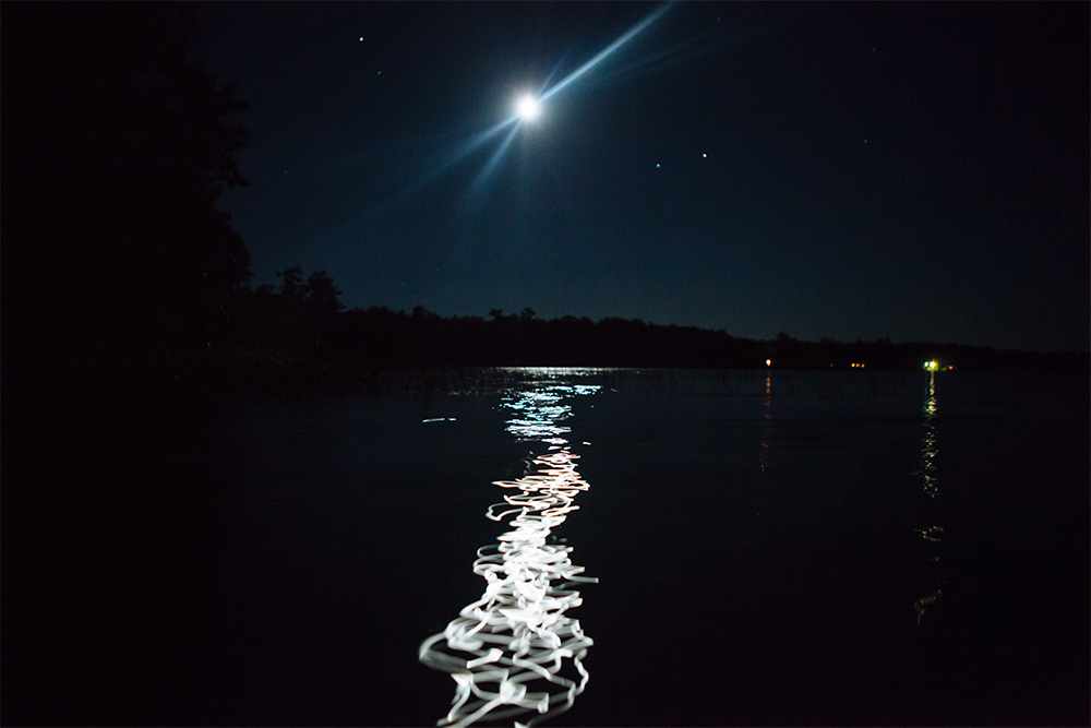 I set my camera on the edge of the dock a few nights ago (very, very carefully), turned up the ISO as high as it would go and hit the shutter release. This is the image it produced. I love how it captured the light trails on the water enough to have endured getting eaten alive by mosquitos. The next morning I woke up with a swollen welt on the back of my left arm so huge it looked like I had grown a freakish muscle overnight. A souvenir I get to take home from Wisconsin!