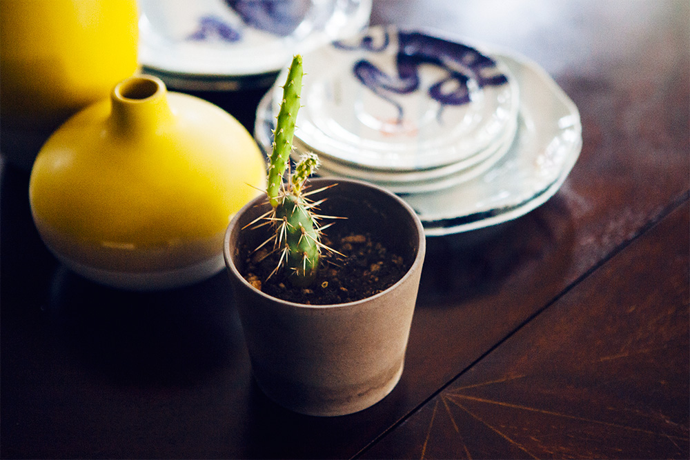 I had this tiny pot with a dying plant inside of it, so we yanked it out and replaced it with one of the cactus plants. And oh my god, it started to grow. Those two shoots formed on my watch! I’m sure those of you familiar with plants are shaking your head at me, but I feel like naming this thing because nature is taking place in my kitchen! Exclamation point!