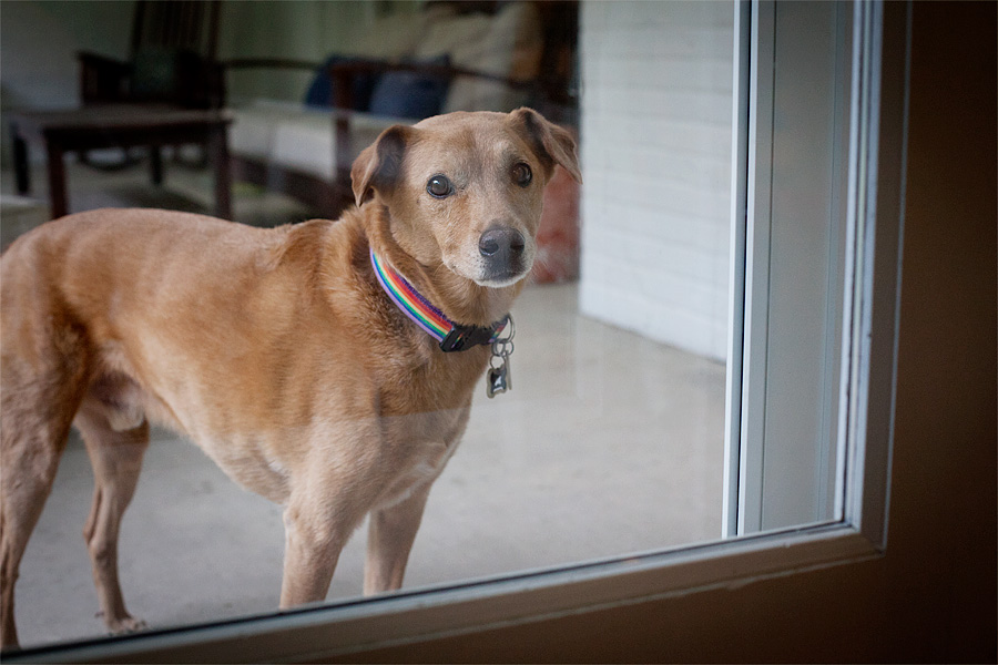 Sad little rainbow dog wants to come inside from the cold! Too bad that for every tampon he chewed up he has to stay outside for an extra two hours! See you in 2013, Chuck! Exclamation point!